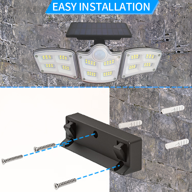 3 Head Motion Sensor Spotlights Outdoor IP65 Waterproof 360 Rotatable Adjustable 80LED Solar Security Flood Lights for Garden white box or color box