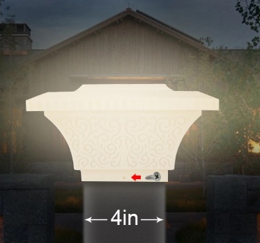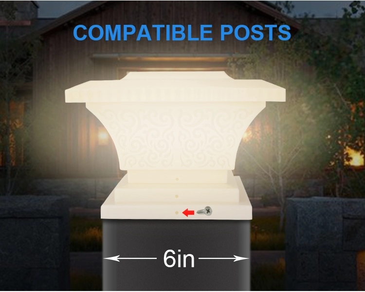 Humanization Design Compatible for Use with 4x4inch,5x5inch,6x6inch Posts. ABS Anti-Glare Lampshade and 2700K Color Temperature Provides Bright and Soft White Light. Unique Carved Lampshade is Both an Elegant and Beautiful Decoration. |