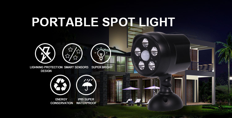 IP65 Adjustable Head Portable LED PIR Sensor Ceiling Billboard Spot Light with 4 High Capacity Ion Batteries